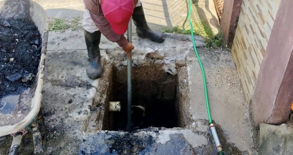 El día de hoy, por instrucciones del presidente Ángel Delgado Ramírez, el departamento de Obras Públicas se encuentra realizando trabajos de desazolve de registro en diferentes puntos, dado el caso, también se lleva a cabo la reparación de la línea de drenaje, así como la demolición y reconstrucción del registro.